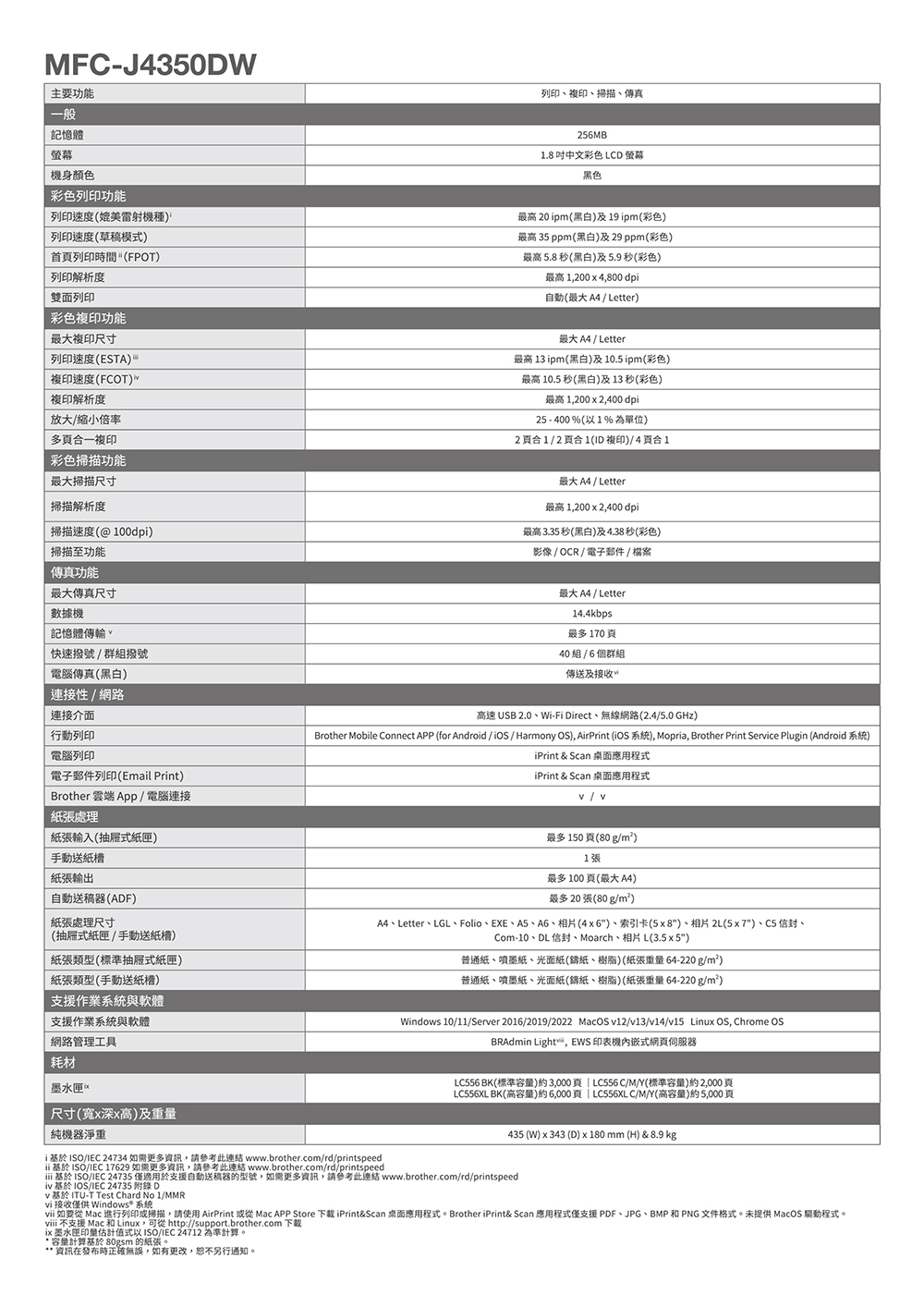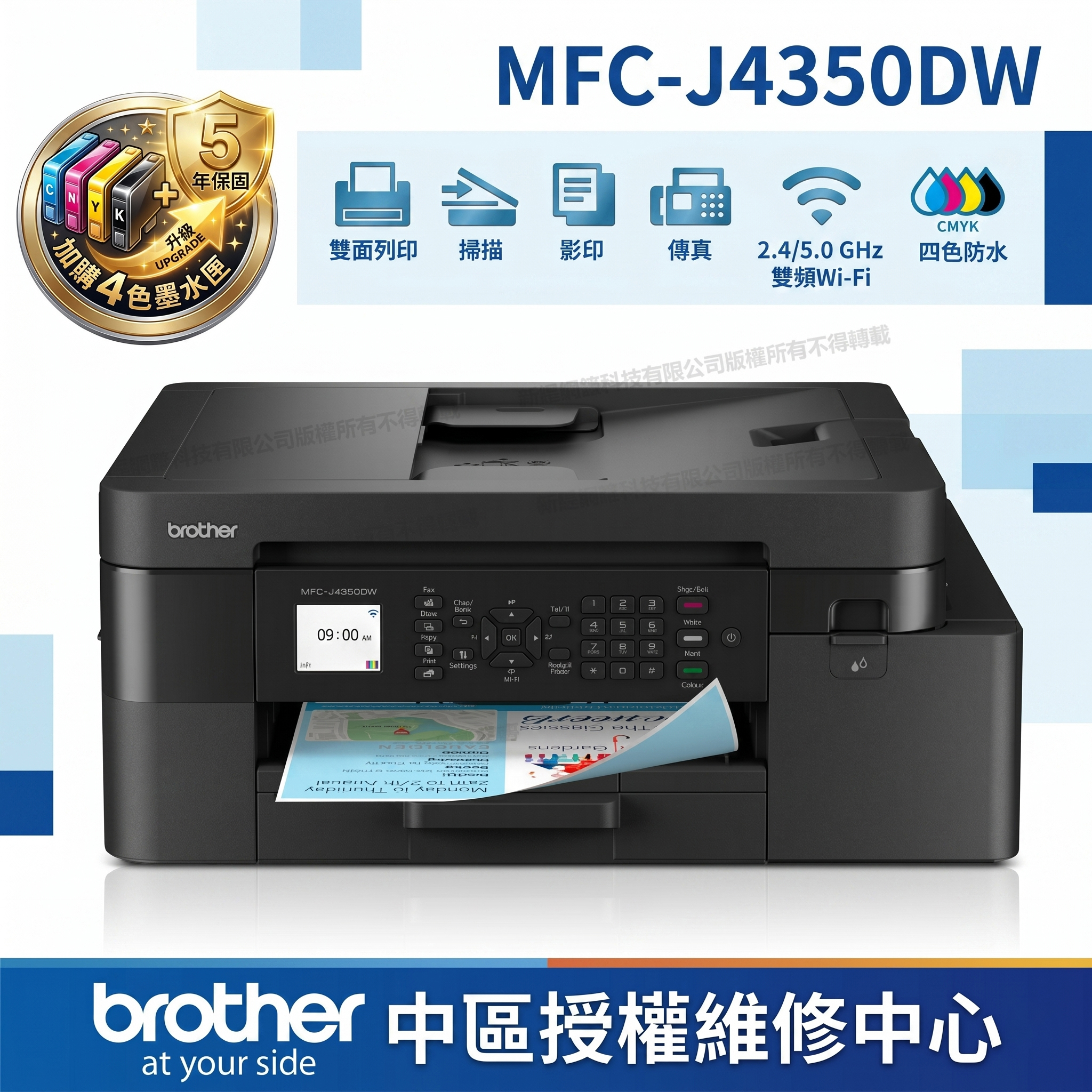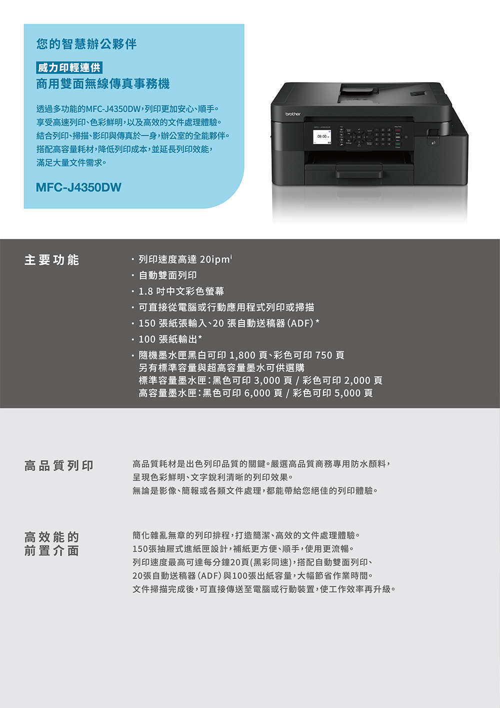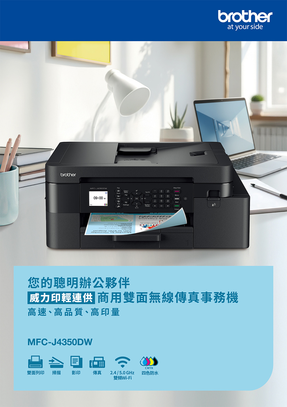brother MFC-J4350DW 威力印輕連供商用雙面無線傳真噴墨事務印表機