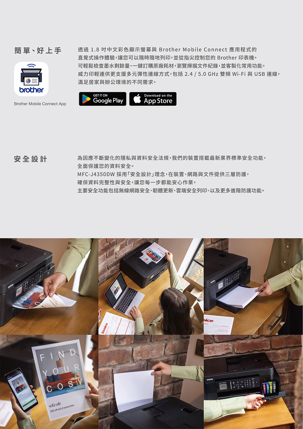 2.5/5.0 GHz 雙頻 WiFi, AirPrint, Mopria, WiFi Direct, USB 2.0