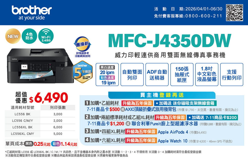主機加購耗材上網登錄可享 5 年保固
