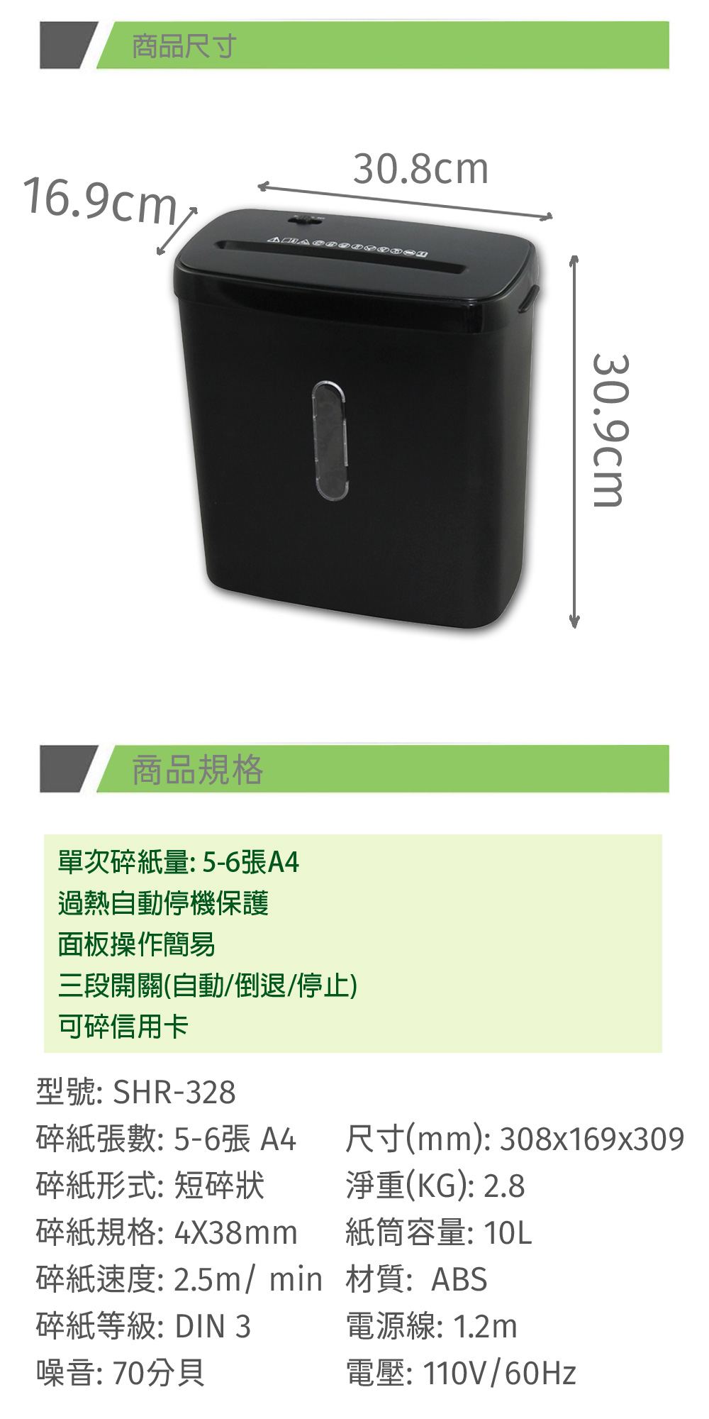 新緹 shinti SHR-328 A4 短碎狀碎紙機(4X38mm)