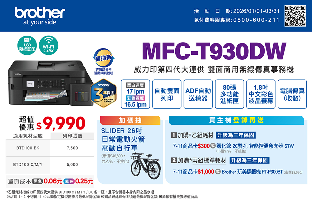 brother MFC-T930DW 威力印第四代大連供 雙面商用無線傳真事務機