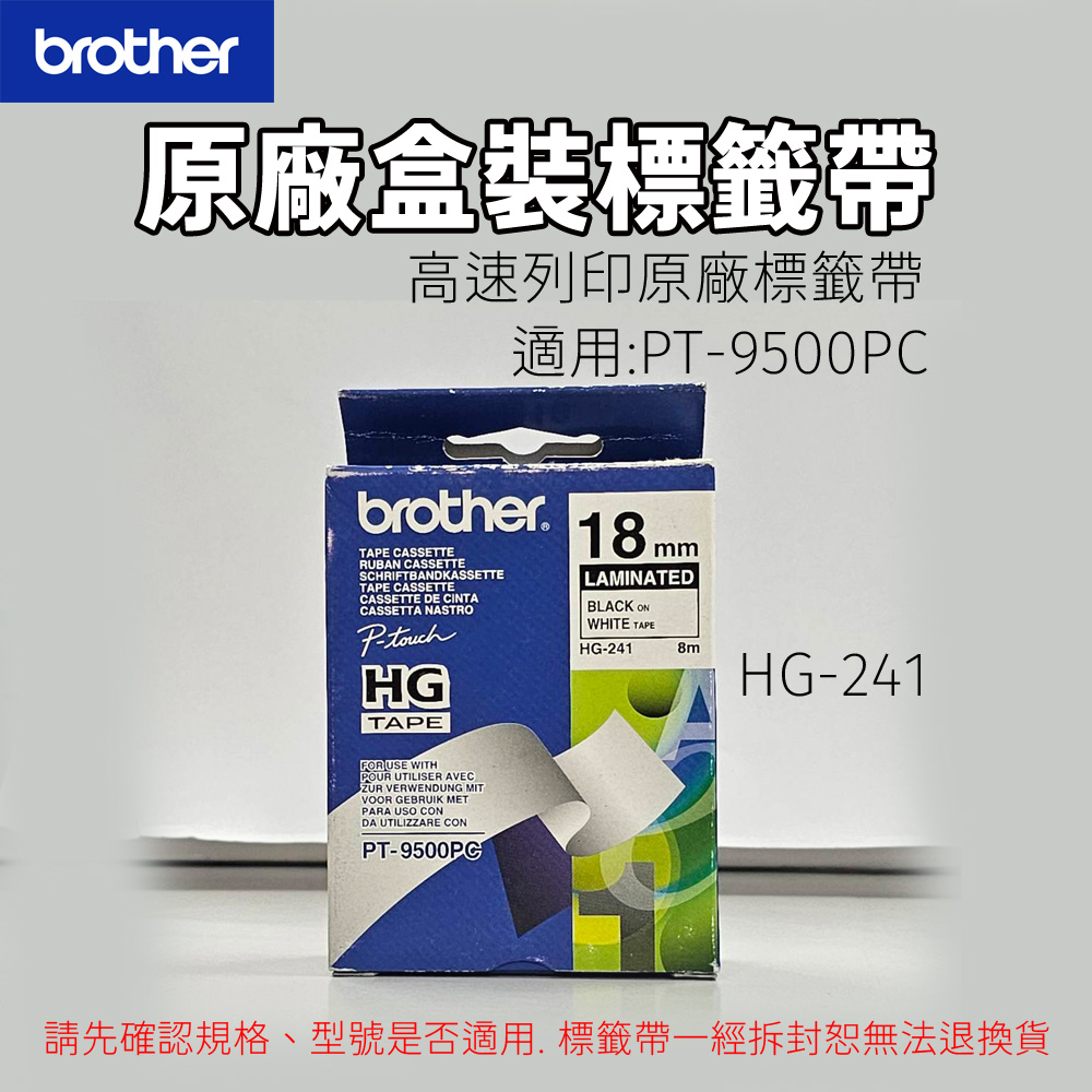 Brother HG-241 18mm 白底黑字 高速列印原廠標籤帶