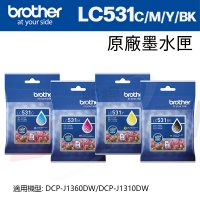 brother LC531 BK/C/M/Y 原廠標準容量四色墨水匣(適用:DCP-J1360DW/J1310DW)